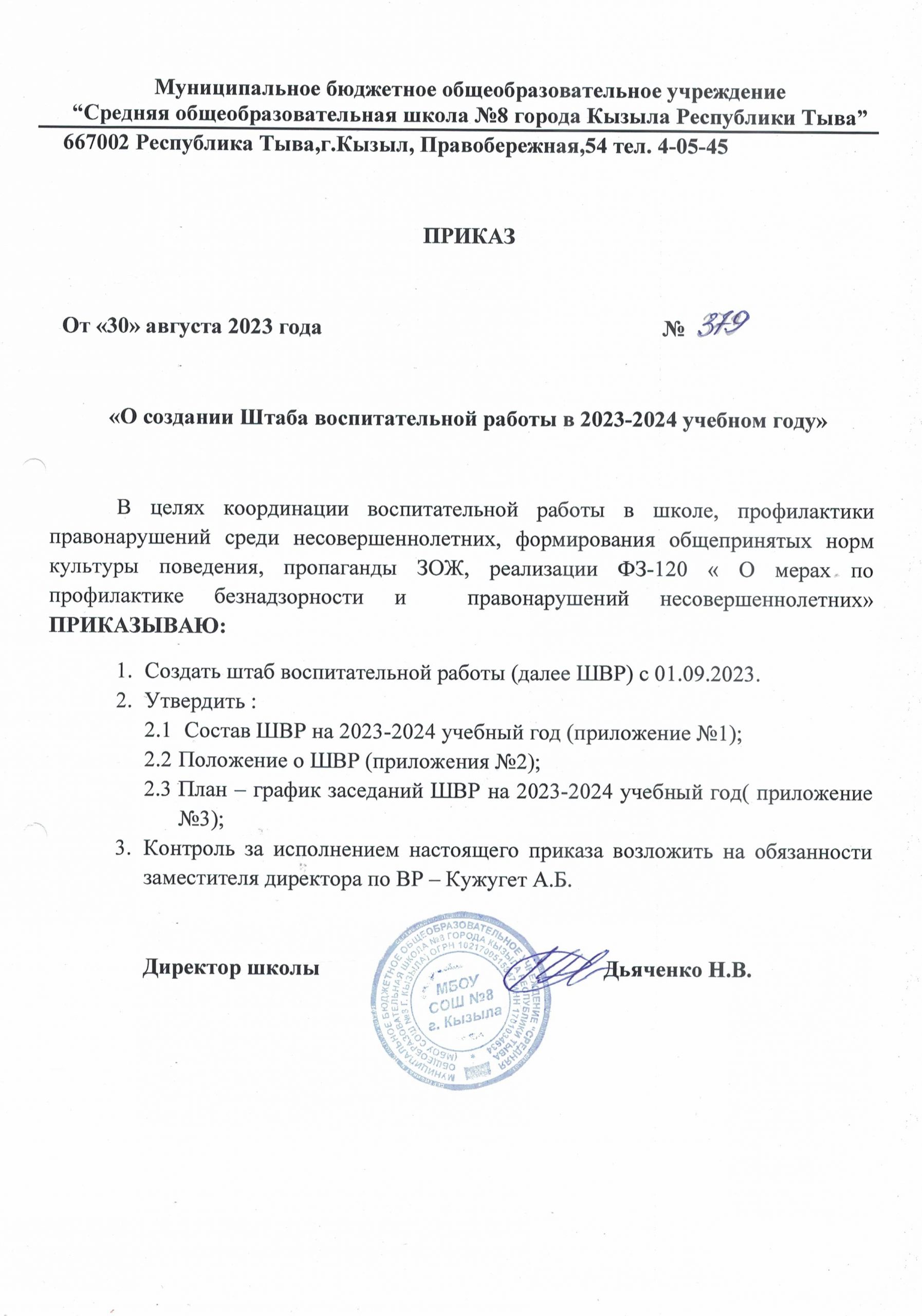 Штаб воспитательной работы (ШВР) Приказ о создании ШВР Состав ШВР Положение о ШВР План График ШВРСкачать