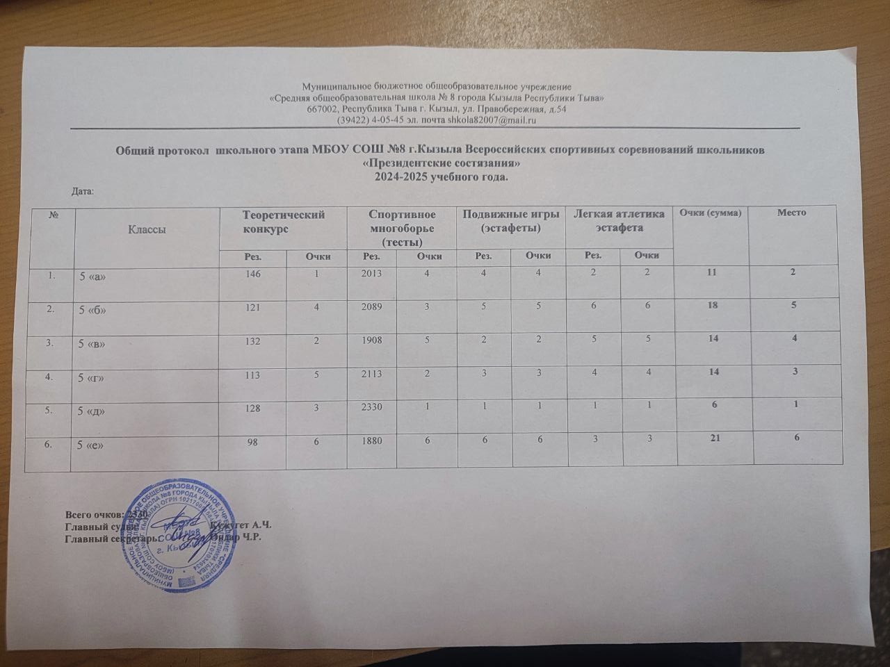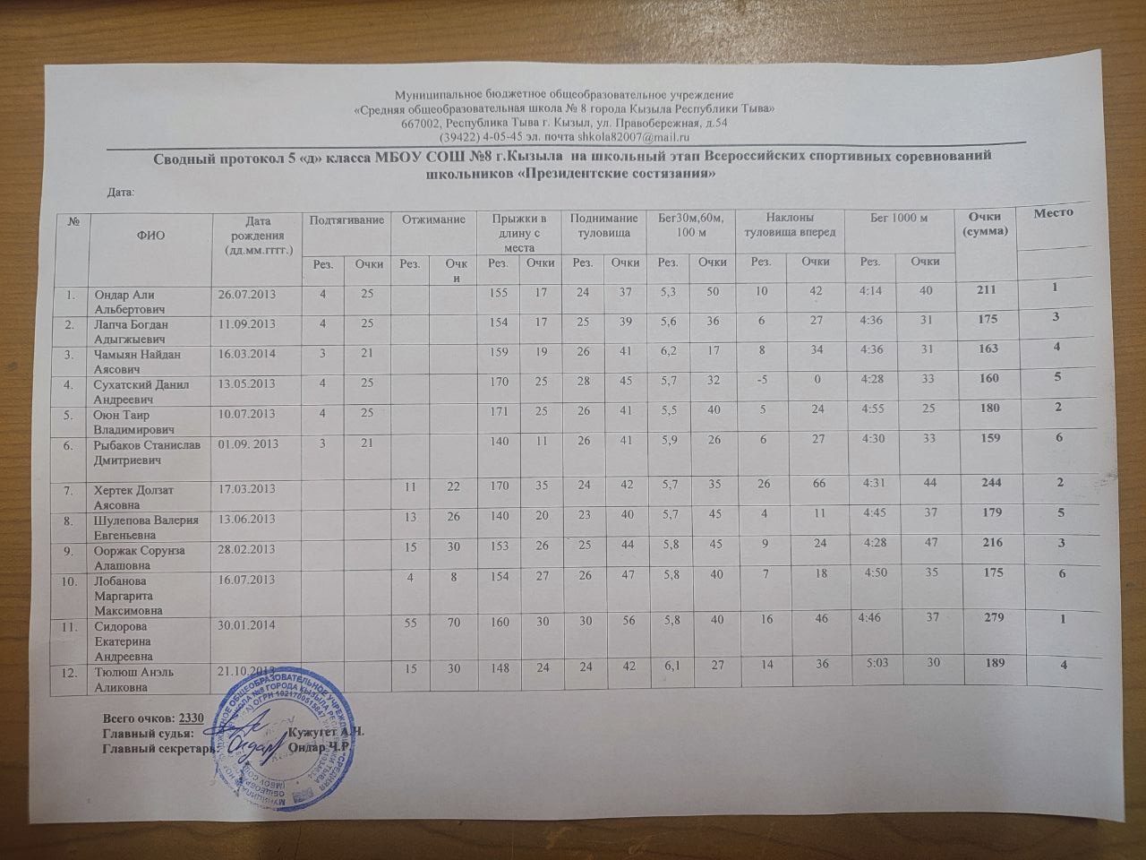 Итак, итоги школьного этапа Всероссийских игр «Президентские состязания»: