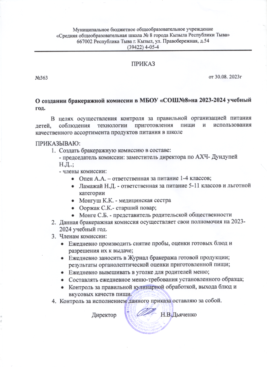 Непосредственное приготовление блюд для школьников осуществляют сотрудники МУП ОП «Школьник» (заключен договор с 15.09.2020 года).