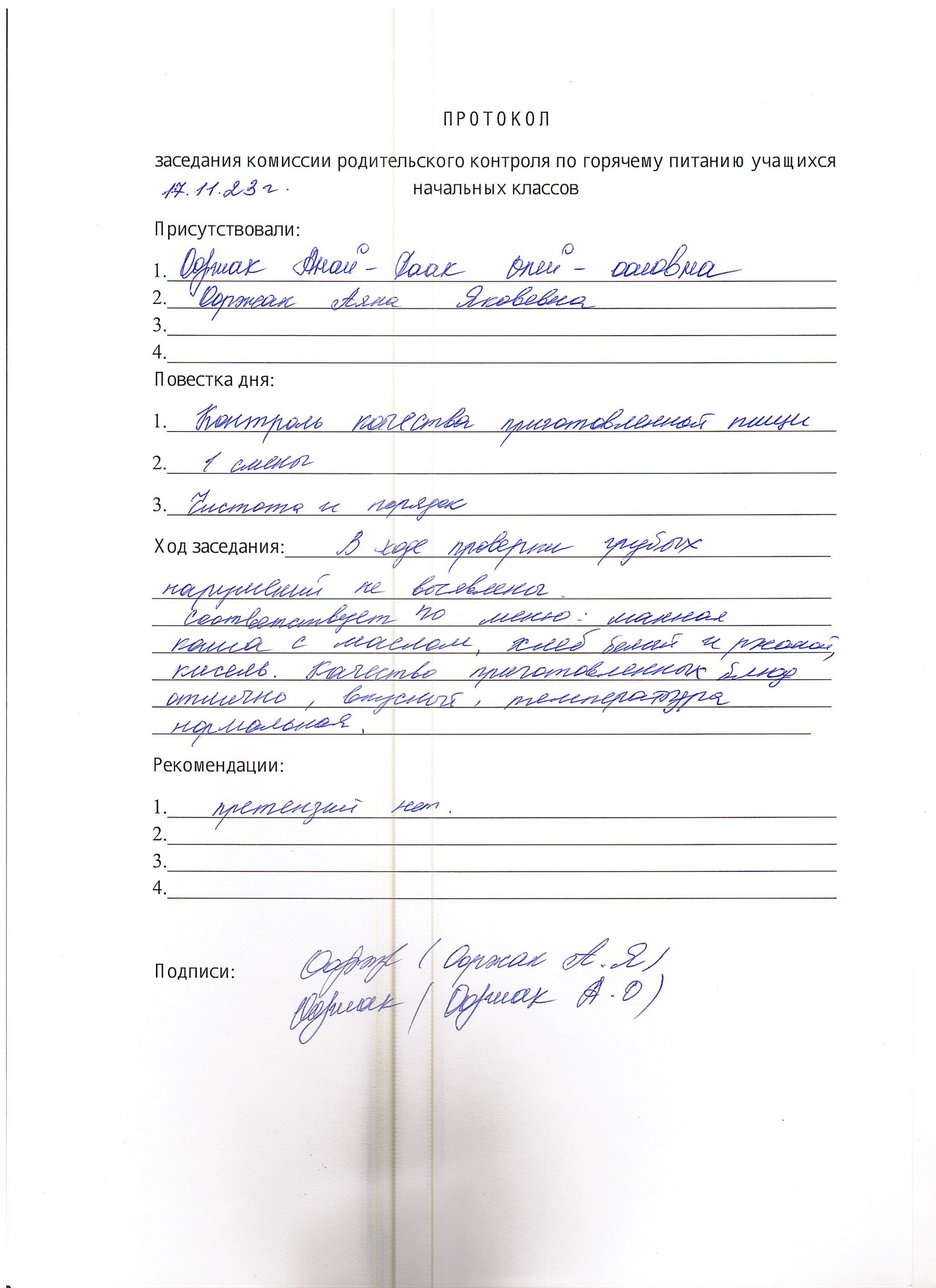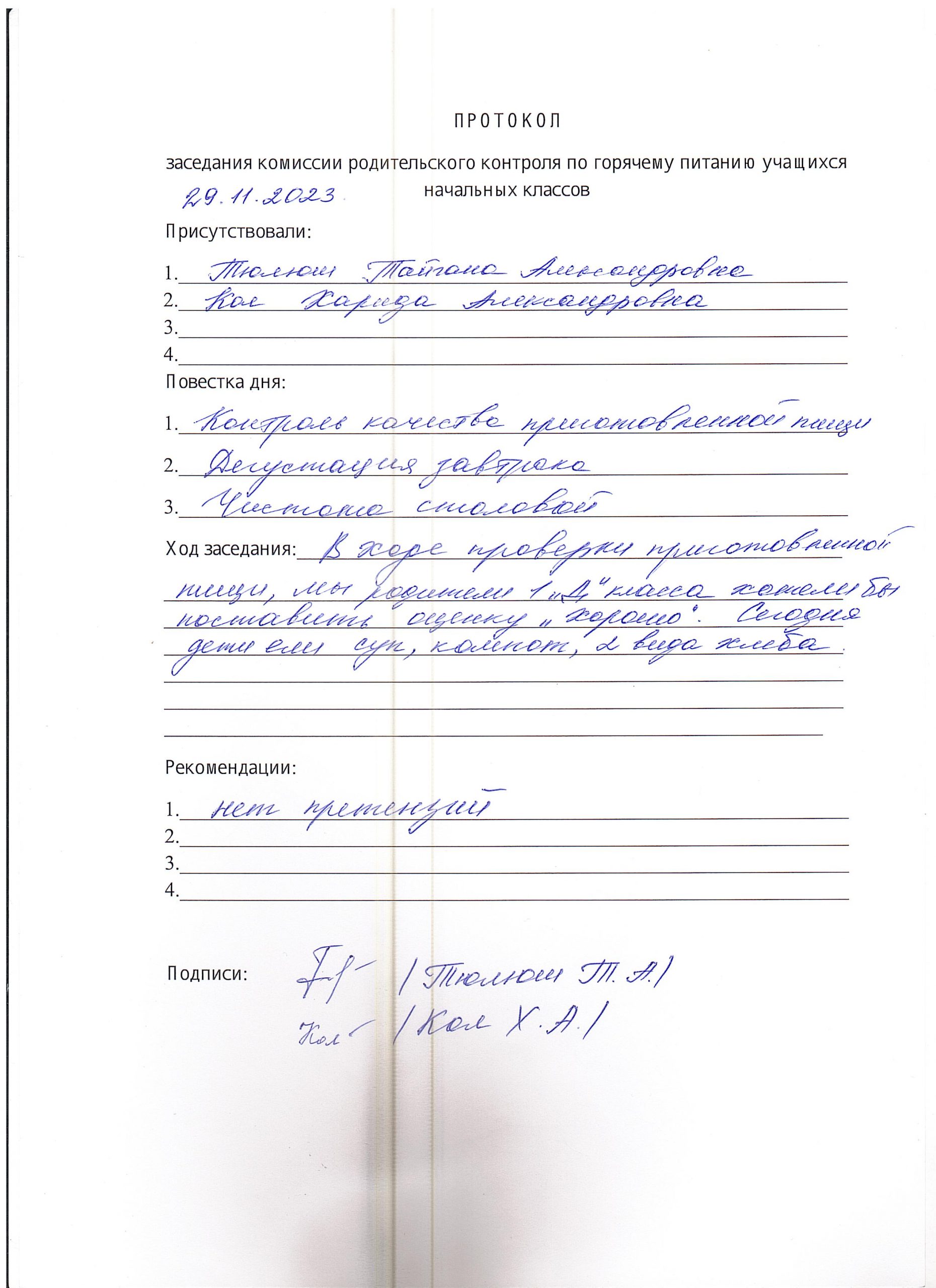 Представители родительского комитета остались довольны качеством приготовления школьного питания.