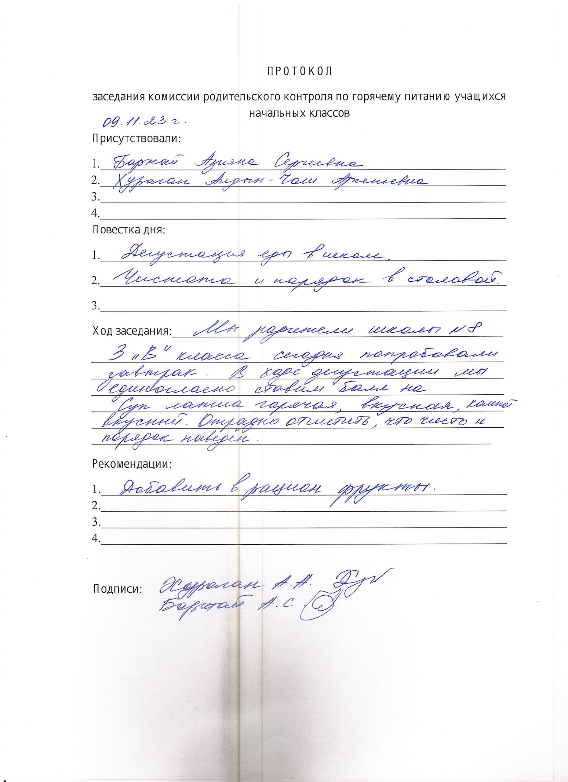 9.10.2023 г. Родительский контроль горячего питания в столовой МБОУ СОШ # 8 г. Кызыла